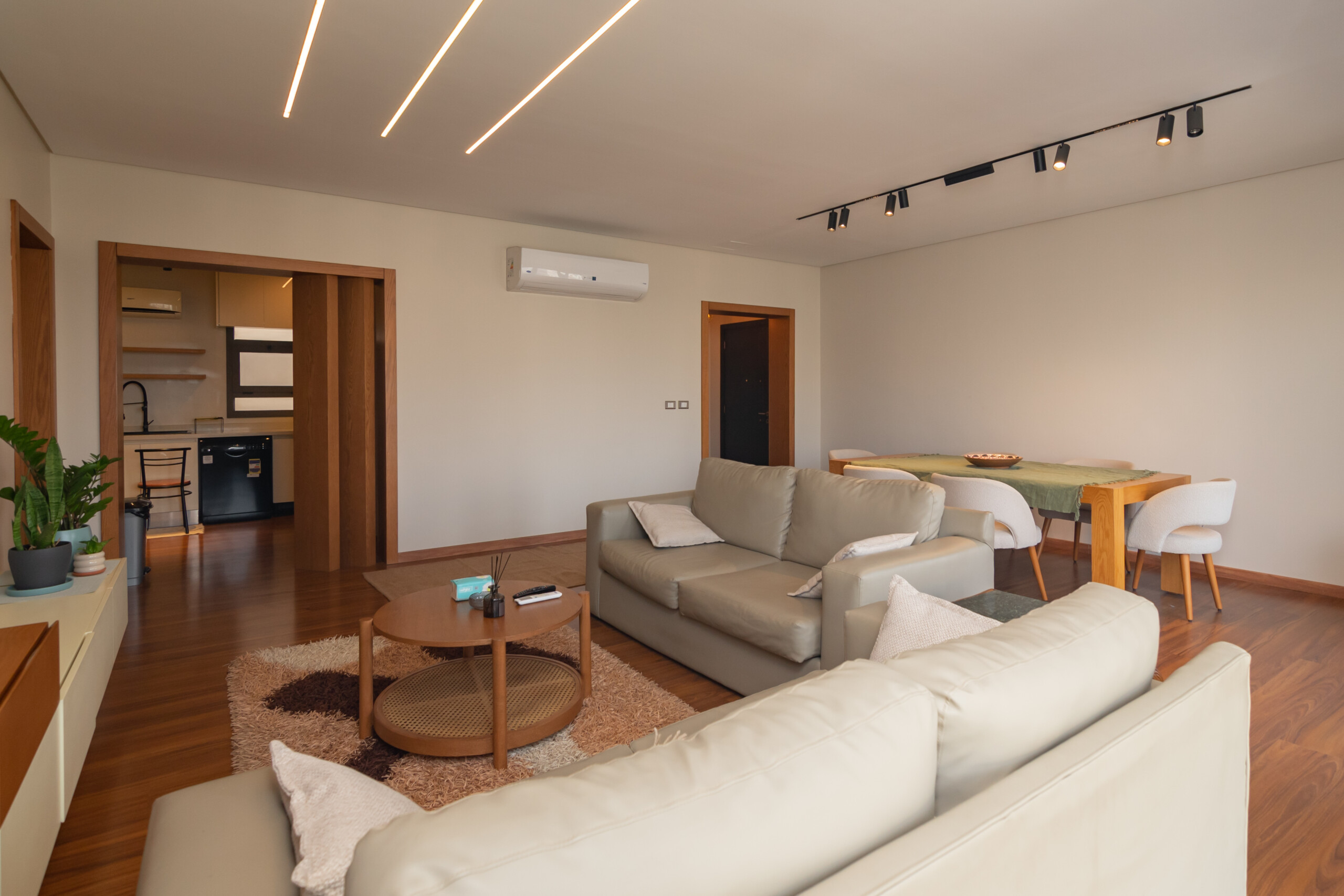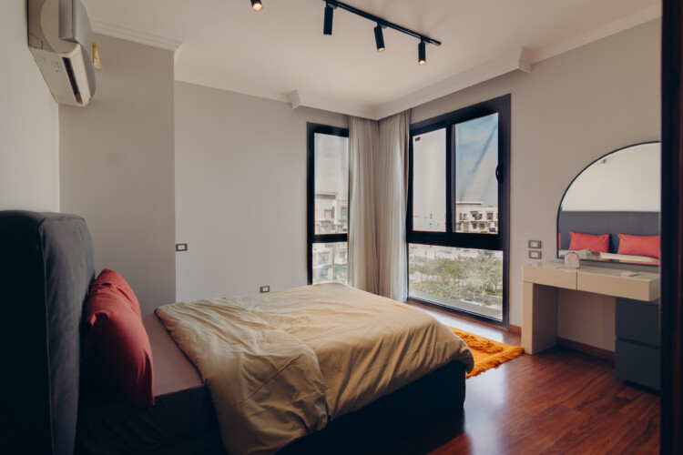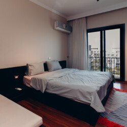 Modern 3BR apartment in SODIC Eastown featuring 2 bathrooms (1 ensuite), a spacious living area, and a large private balcony. Located in a secure gated community with 24/7 security, landscaped gardens, walking paths, cafes, and retail nearby. Professionally managed and serviced by Zen Stays for a comfortable, hassle-free stay.