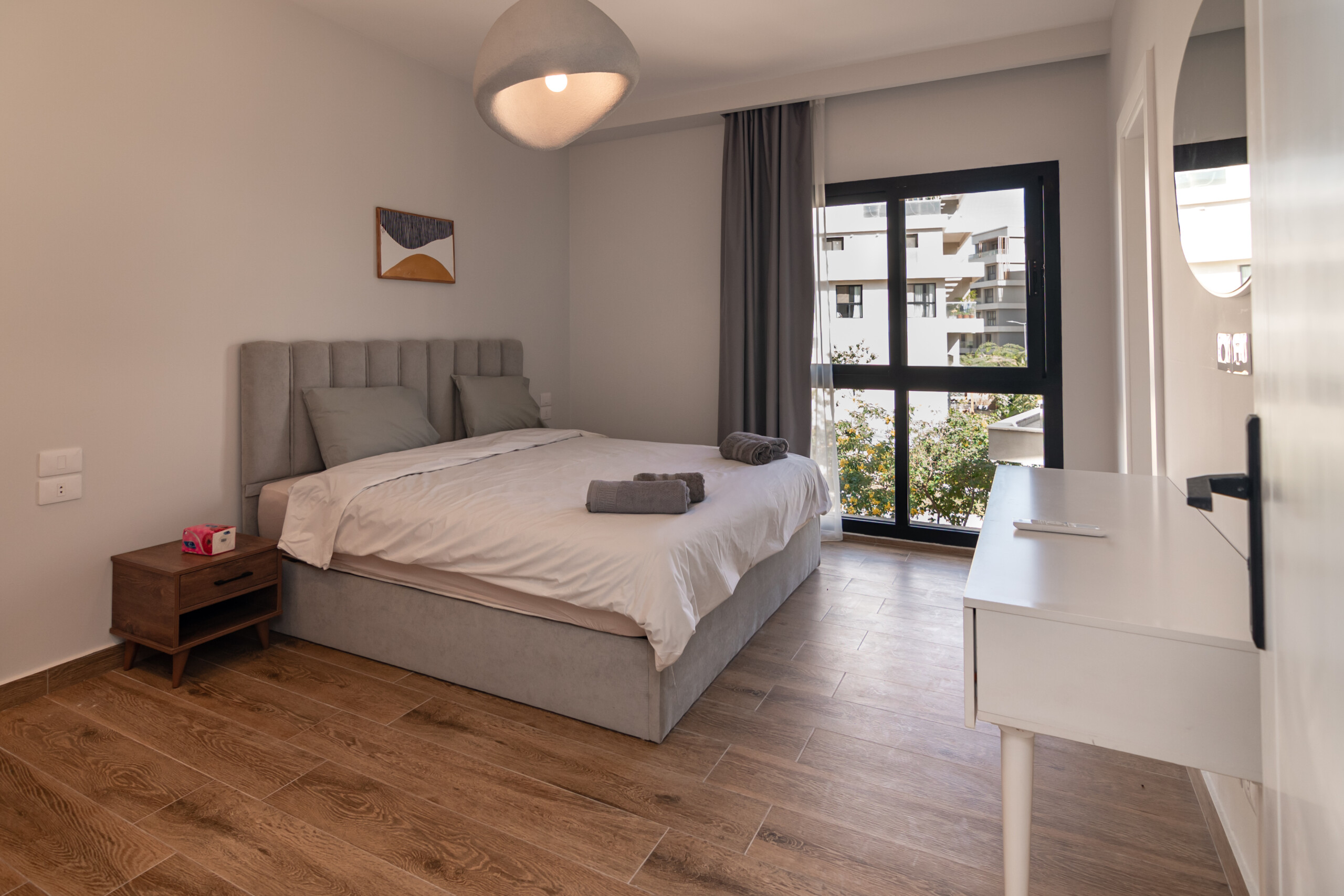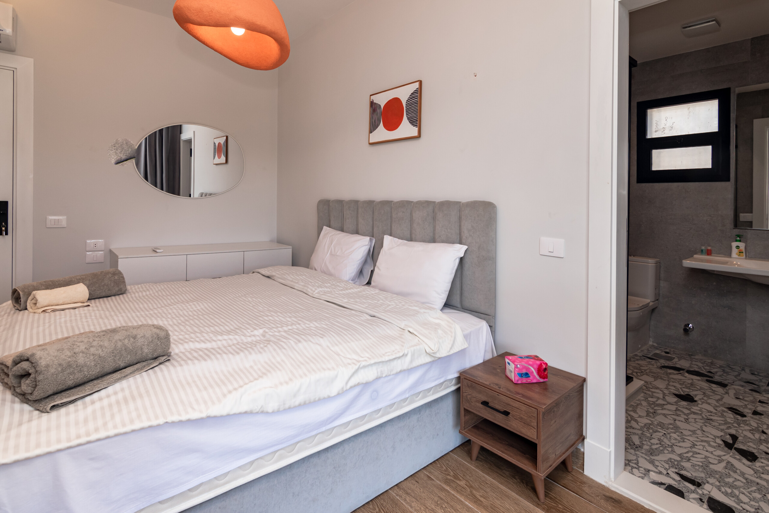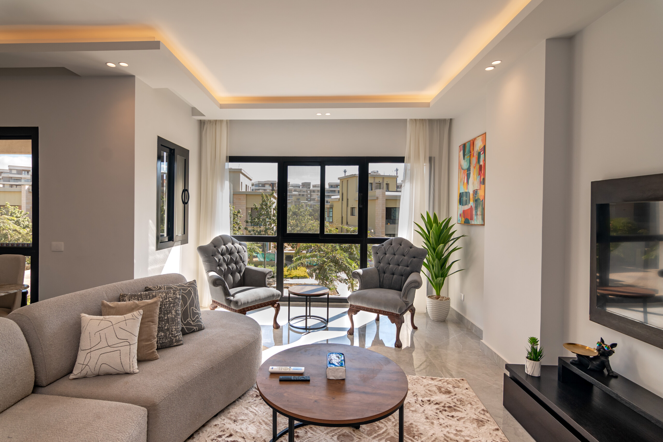 Spacious 3-bedroom home with 2 master suites and luxury finishing in Sodic Villette, New Cairo. Enjoy pools, clubhouse, tennis & paddle courts, gym, and serene green paths. Prime location near dining and shopping. Operated by Zen Stays.